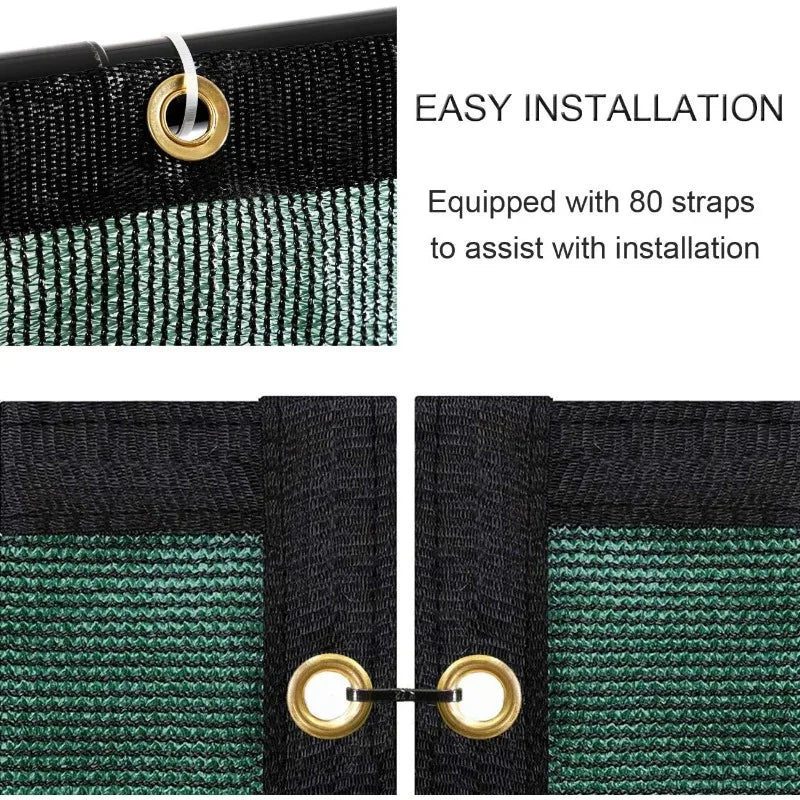 Easy to install: Use zip ties to fasten the grommets to the fence in each side. Our fence screen is equipped with denser grommets and 80 straps to keep the fence closer to your fence.