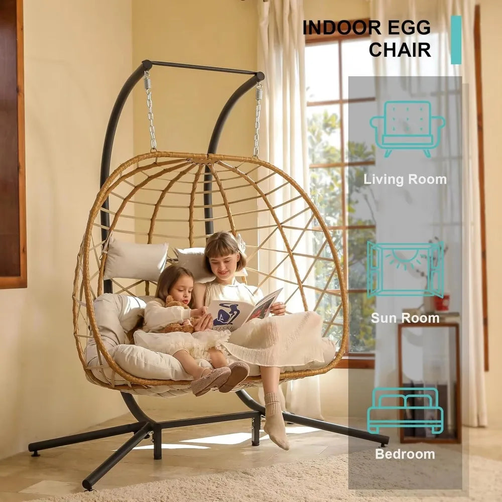 - ★【Cozy Design】 2 persons large egg swing chair with stand is ergonomically designed to fit the curve of the human back, providing a comfortable hanging experience for you and your lover and friends.