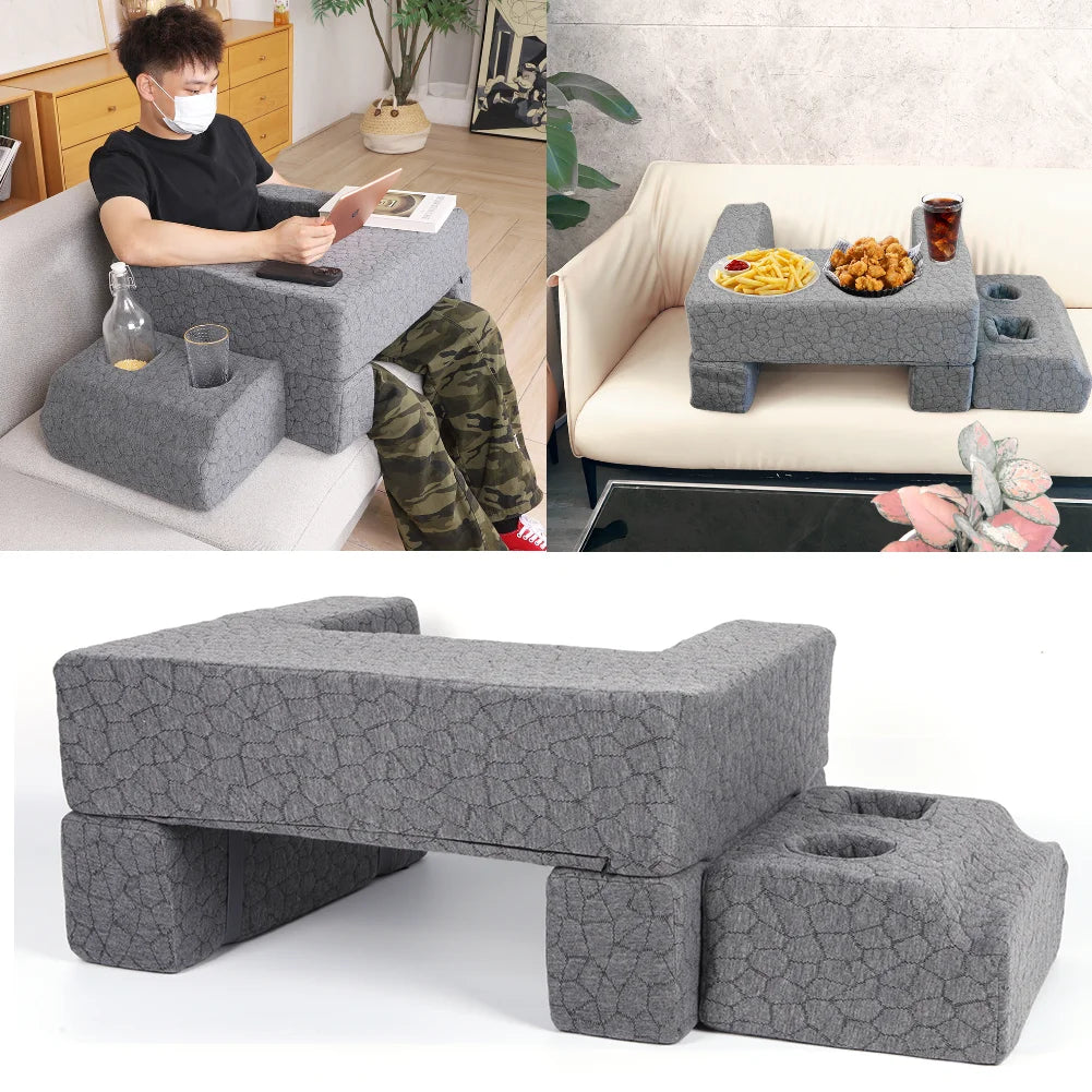 4. Convenient Storage: The Arm Rest Pillow includes a dedicated shelf platform for storing remote controls, phones, cups, and drinks, ensuring everything is within reach. The storage strap design saves space and keeps things tidy when not in use.