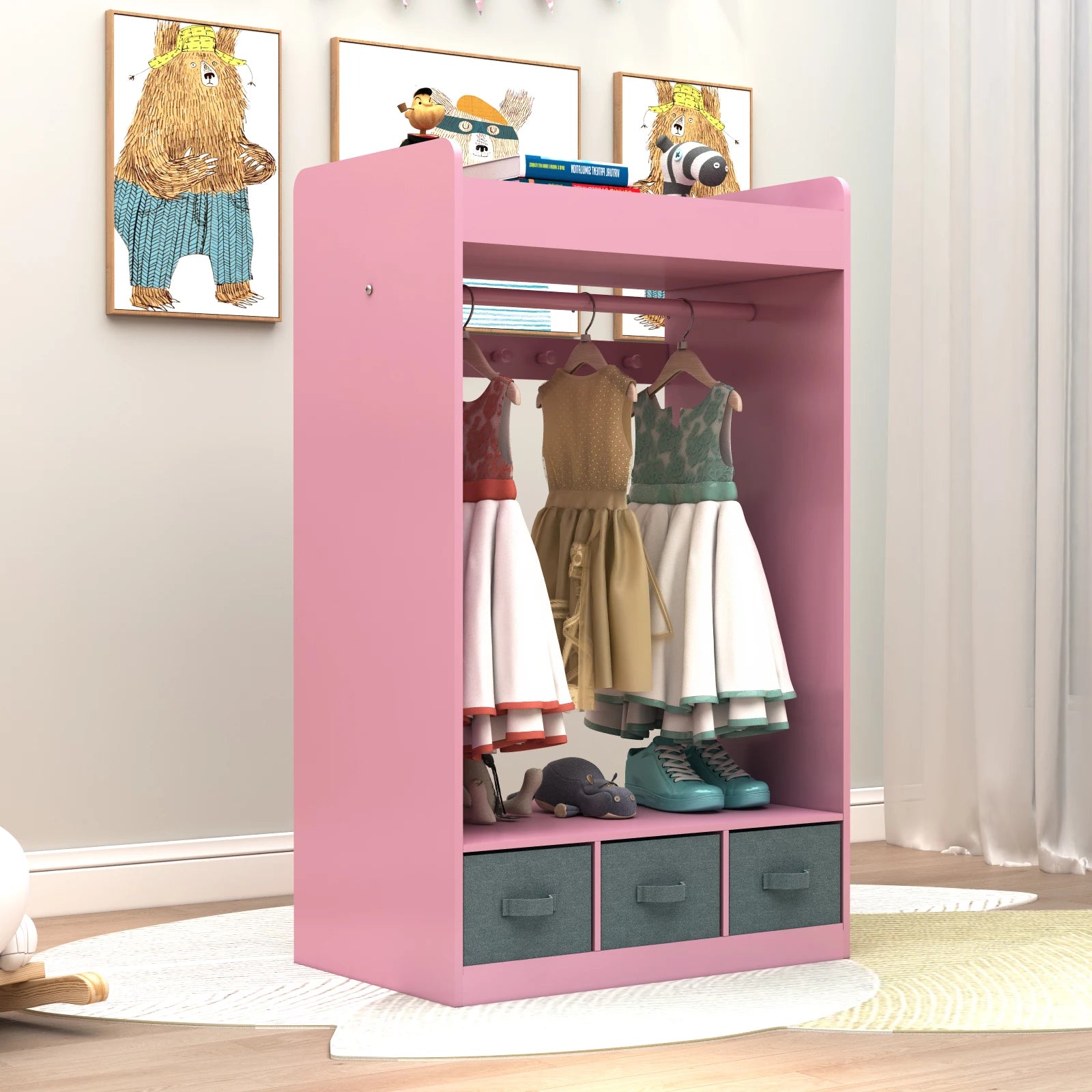 Set up a perfect area to store all your child's makeup clothes. This spacious unit is very suitable for any size of game room or bedroom, with smooth, round edges to match various decorations. The indoor space can easily accommodate all your children's favorite clothes, and a full-size embedded Mylar mirror is just suitable for children to enjoy their costumes.