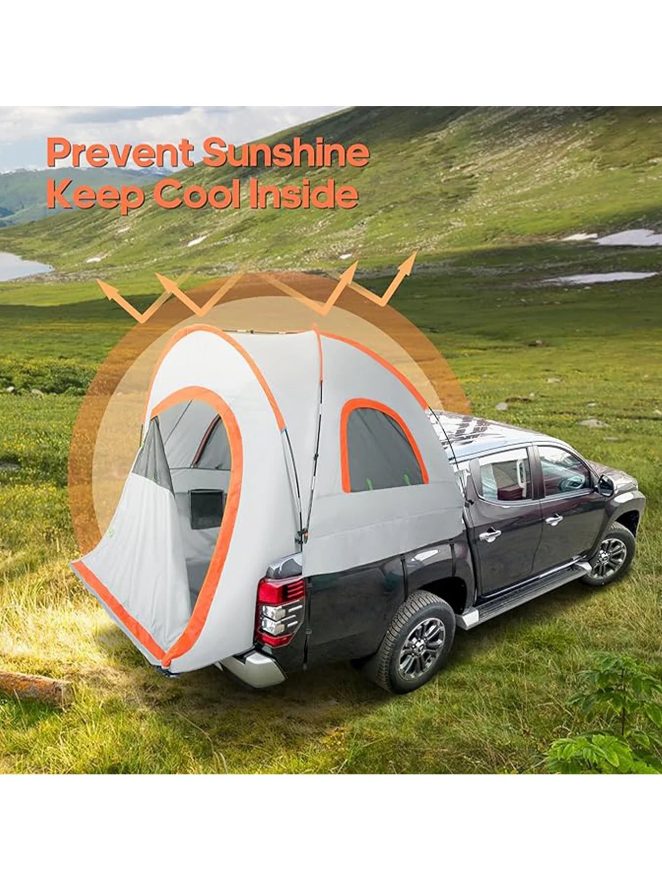 [Premium Material]The inner and outer tents of our pickup truck tents are made of waterproof density 2000MM oxford cloth material, the overall tent body is rainproof and sunscreen, no fear of all kinds of bad weather outdoors, bringing you a more comfortable camping experience.
