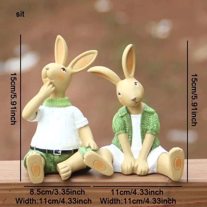 Rural Pastoral Style Lovely Couples Double Rabbit Shaped Resin Crafts Easter