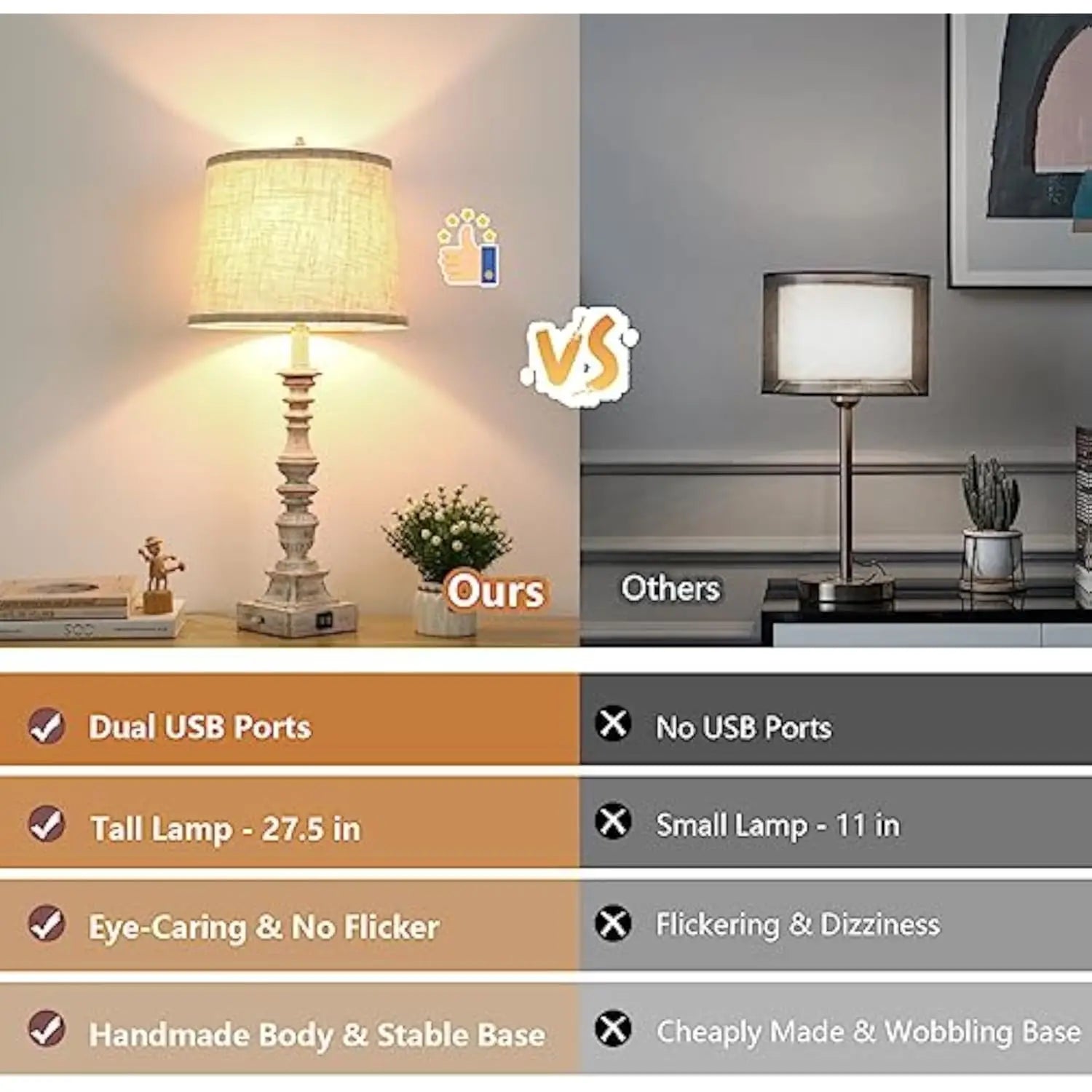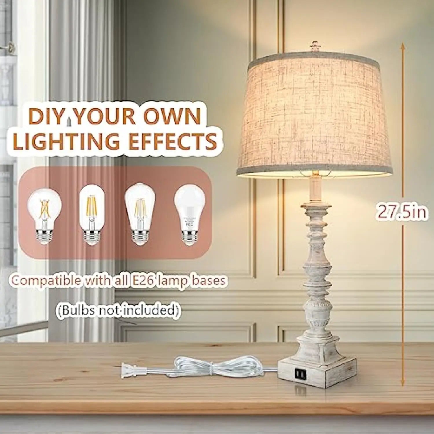 - PREMIUM UNIQUE DESIGN: This farmhouse table lamp featured a well-made beige fabric shades, hand-painted resin bodies, and a premium rotary switch that blends classic and contemporary styles. No doubt, this elegant set of 2 lamps will be a perfect choice to make your bedside table, office desk, side table, cafe, or dresser more exquisite