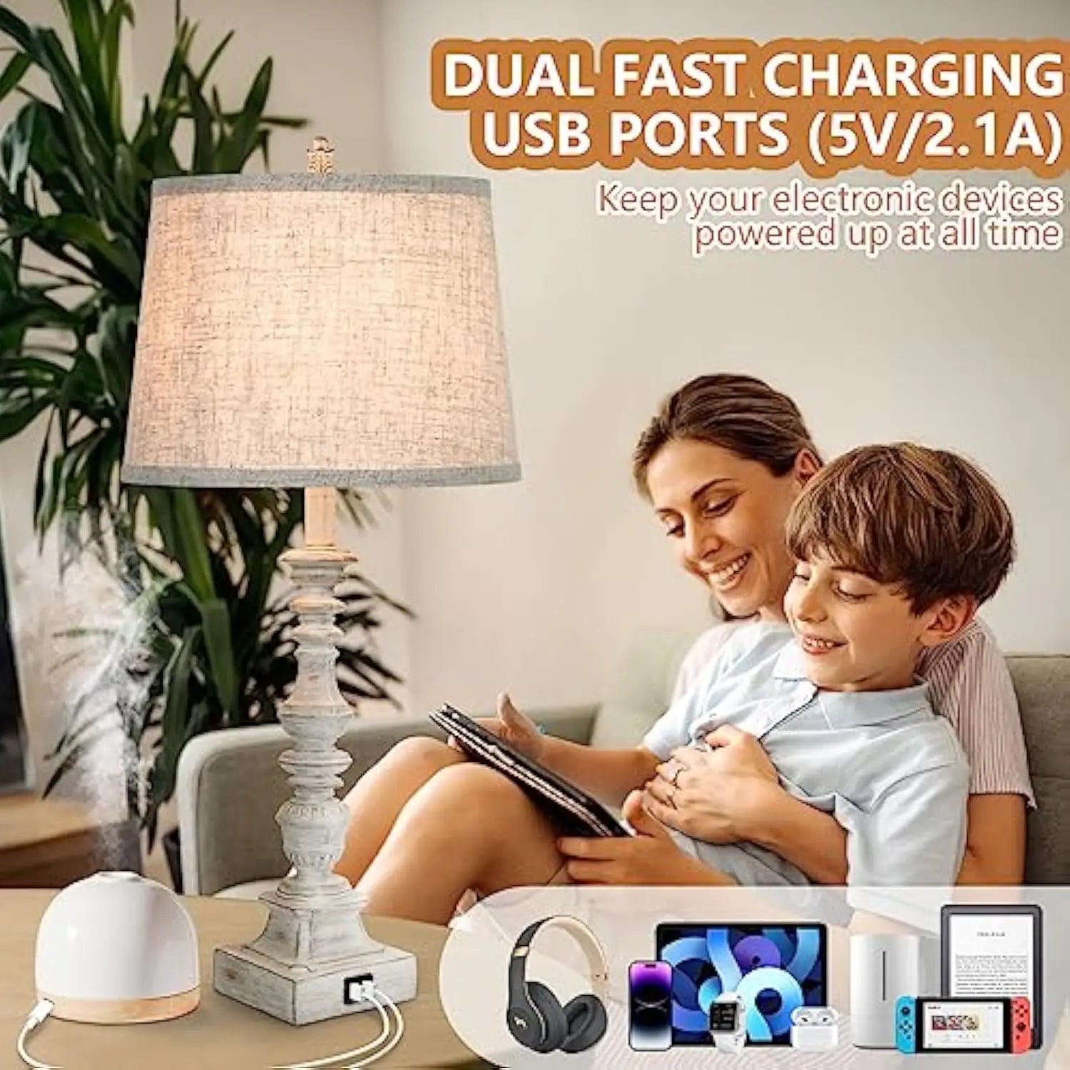 Set of 2 Farmhouse Table Lamps with 2 USB Ports
