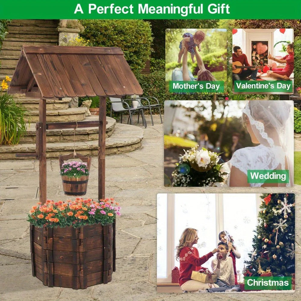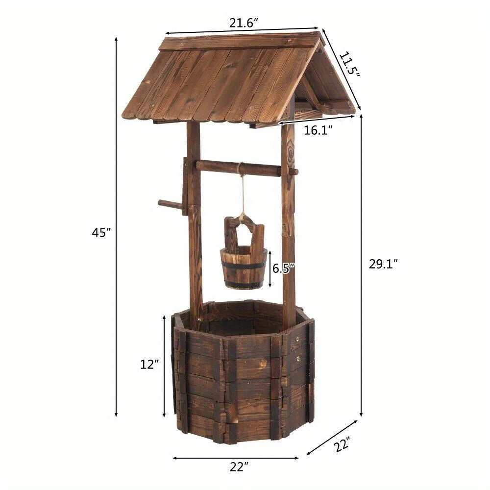 - 【Practical Usage and Beautiful Decoration】:Burnt-like wood finish gives a rustic and stylish appearance to the planter. If you are searching a large planter for your flower bed decor, wishing well flower pot is the perfect one.